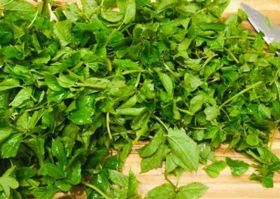 - Verwenden: Blätter wie Spinat, Salat oder Petersilie