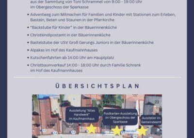 Die Adventmarkt-Stände der Aussteller sind am 06.12.25 und 07.12.2025 von 09:00-19:00 geöffnet.